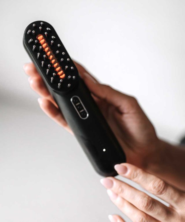 Die ergonomische Form ermöglicht eine präzise Führung des Geräts über die Kopfhaut und eine komfortable Anwendung während der Behandlung. Eine gepflegte Kopfhaut ist die Grundlage für ein ästhetisches und gesund aussehendes Haar.